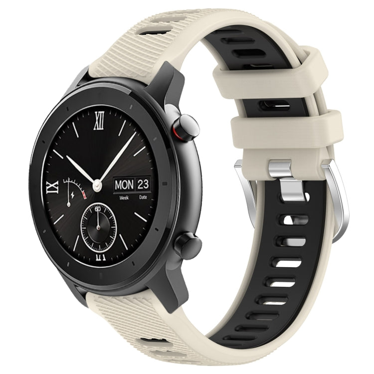 Correa de Reloj para Amazfit GTR 42mm 22mm silicona textura cruzada con hebilla acero dos colores (Starlight + Black)