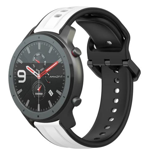 Correa de Reloj para Amazfit GTR 47mm 22mm Convex Loop Silicona Dos Colores (Blanco + Negro)