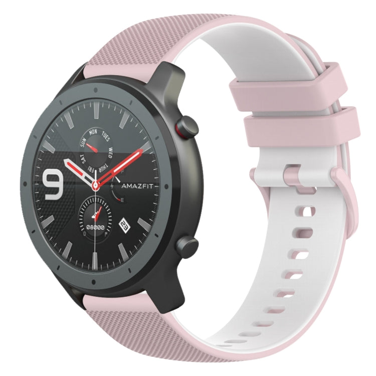 Correa de Reloj para Amazfit GTR 47mm 22mm Silicona Dos Colores a Cuadros (Rosa + Blanco)