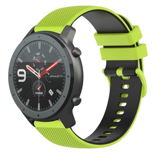 Correa de Silicona para Amazfit GTR 47mm 22mm Dos Colores a Cuadros (Verde Lima + Negro)