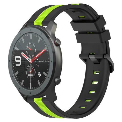 Correa de Reloj silicona para Amazfit GTR 47mm 22mm dos colores vertical (Negro + Verde Lima)