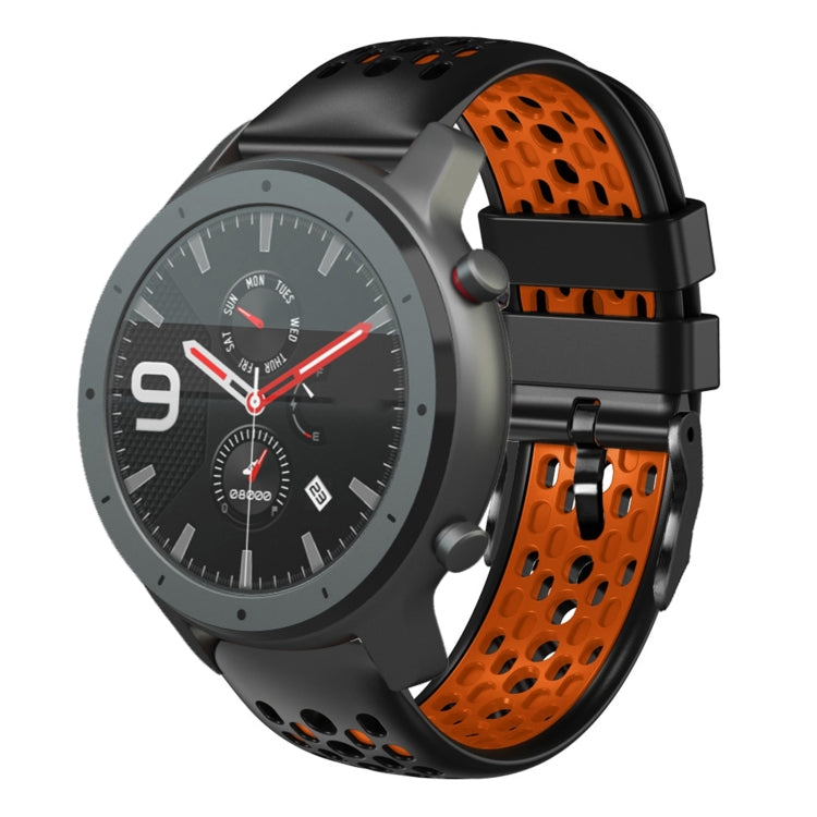 Correa de Silicona para Amazfit GTR 47mm 22mm Transpirable Dos Colores (Negro + Naranja)