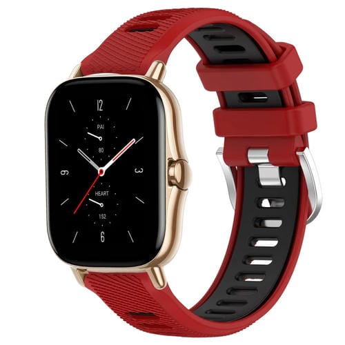 Correa de Reloj Amazfit GTS 2 22mm Silicona Textura Cruzada con Hebilla de Acero (Rojo + Negro)