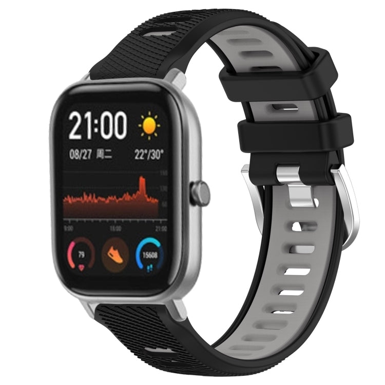 Correa de Reloj para Amazfit GTS 22mm Textura Cruzada Silicona Hebilla Acero (Negro + Gris)