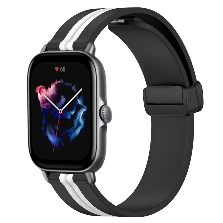 Correa de Reloj Silicona para Amazfit GTS 3 20mm con Cierre Magnético Plegable (Negro + Blanco)