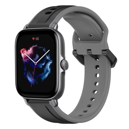 Correa de Silicona para Amazfit GTS 3 con Bucle Convexo de 20mm (Negro + Gris)