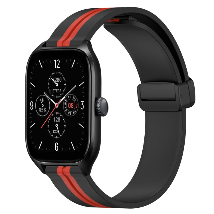 Correa de Silicona para Amazfit GTS 4 20mm con Cierre Magnético Plegable (Negro + Rojo)