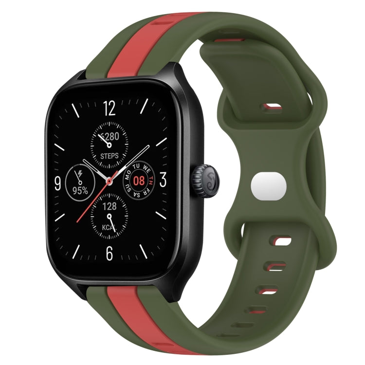 Correa de Reloj Amazfit GTS 4 20mm Silicona Hebilla de Mariposa Dos Colores (Rojo + Verde Militar)