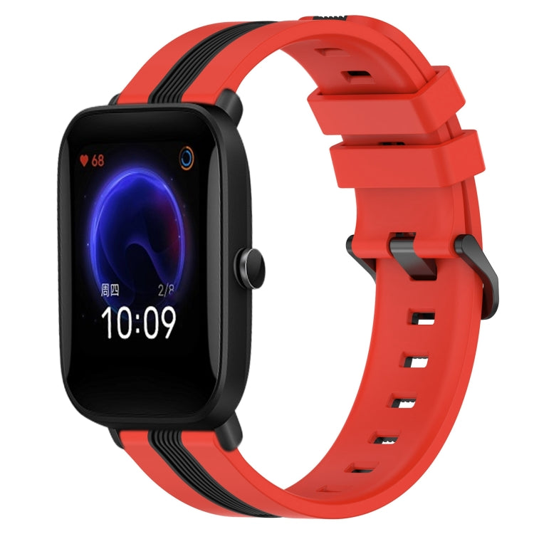 Correa de Reloj Amazfit Pop 20mm Silicona Dos Colores Vertical (Rojo + Negro)