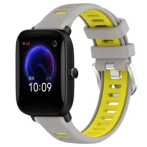 Correa de Reloj para Amazfit Pop 22mm textura cruzada silicona con hebilla acero (Gris + Amarillo)