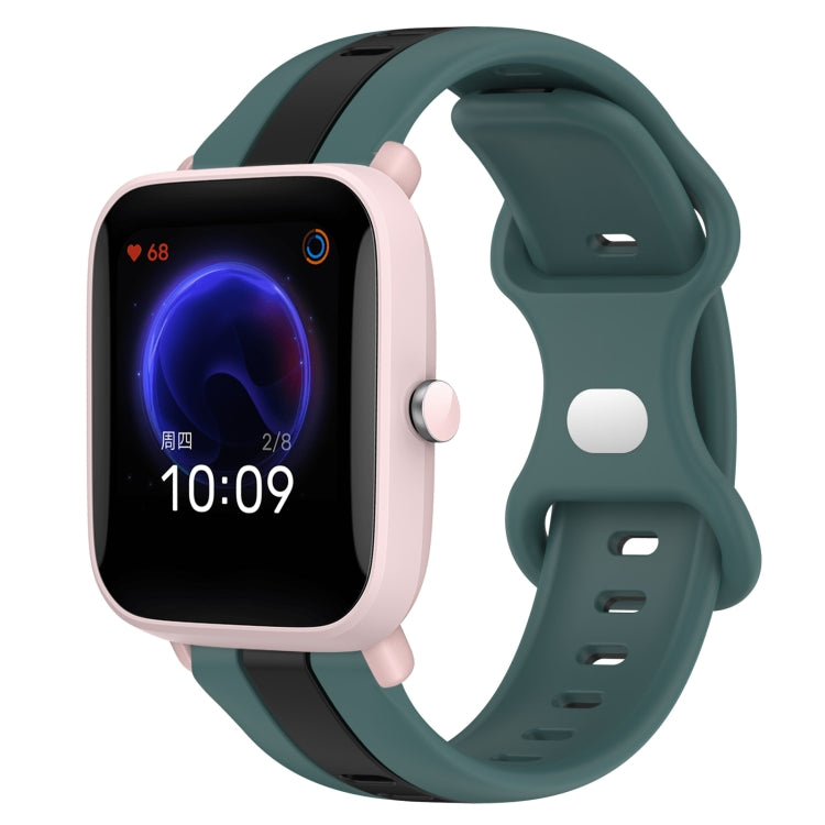 Correa de Reloj Amazfit Pop Pro 20mm Hebilla de Mariposa Silicona Dos Colores (Verde + Negro)