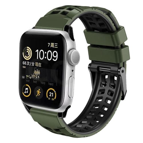Correa de Silicona para Apple Watch 6 44mm con Hebilla Doble Fila de Sarga (Negro Verde Militar)
