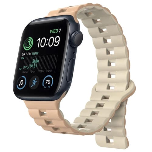 Correa para Apple Watch SE 44mm Silicona Magnética Dos Colores con Hebilla Inversa (Blanco Leche + Blanco Antiguo)