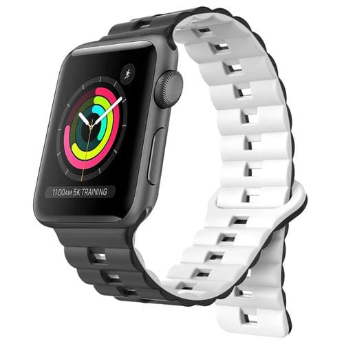 Correa de Silicona Magnética para Apple Watch Series 2 42mm con Hebilla Inversa (Negro + Blanco)