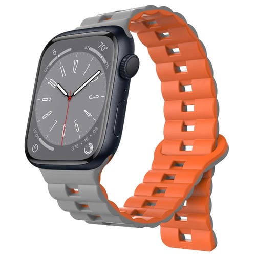 Correa para Apple Watch Series 8 de Silicona Magnética Dos Colores con Hebilla Inversa 45mm (Gris + Naranja)
