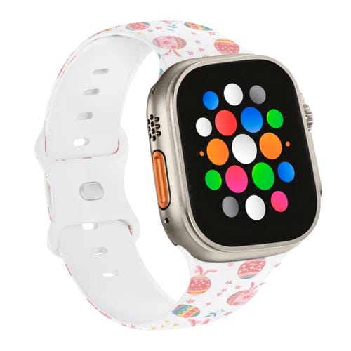 Correa de Silicona para Apple Watch Ultra 49mm con Hebilla de Mariposa y Estampado de Pascua (Huevos de Pascua Blancos)