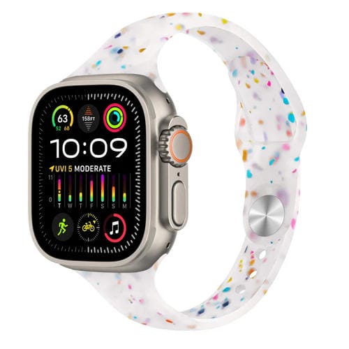 Correa de Silicona para Apple Watch Ultra 49mm con Puntos Coloridos Estilo Delgado (Blanco Gelatina)