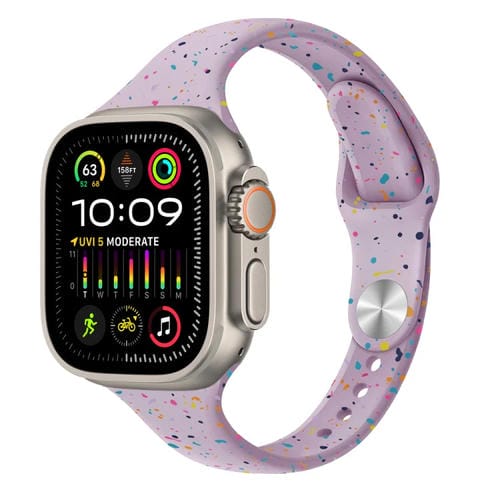 Correa de Silicona para Apple Watch Ultra 49mm con Puntos Coloridos Estilo Delgado (Púrpura Claro)