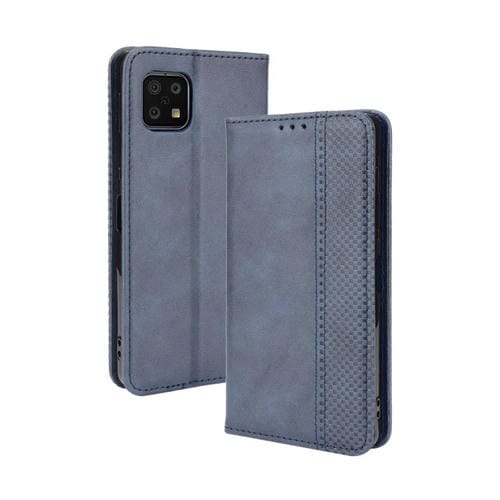 Funda para Aquos Sense6 Hebilla Magnética Retro Crazy Horse Texture Horizontal Flip con Soporte y Tarjetero (Azul)