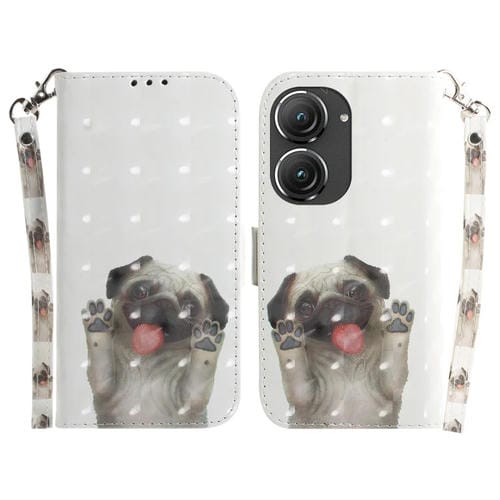 Estuche de Cuero para Asus Zenfone 9 con Tapa Horizontal y Diseño 3D (Pug)