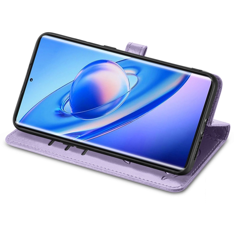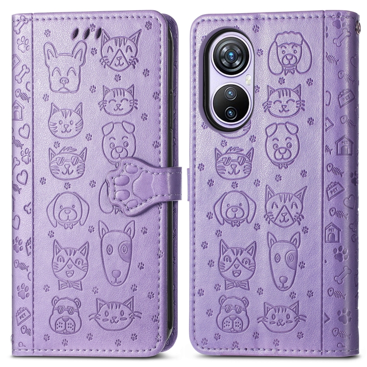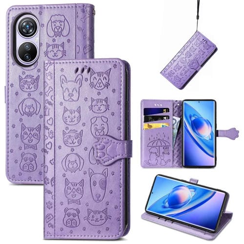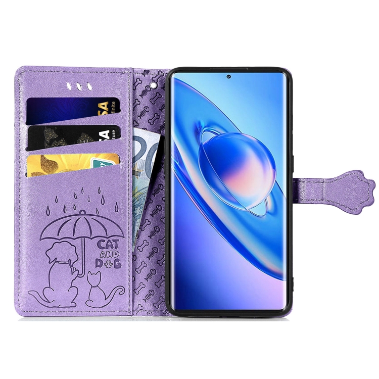 Funda de Cuero para BlackView A200 Pro con Relieve Perros y Gatos (Púrpura)