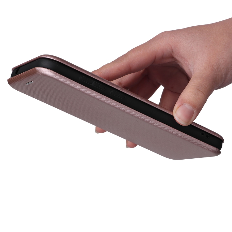 Funda para BlackView A55 Fibra de Carbono Textura Magnetic Flip Horizontal (Rosa)