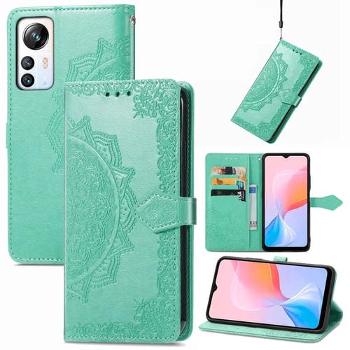 Funda para BlackView A85 Mandala Flower Caja de Teléfono Cuero en Relieve (Verde)