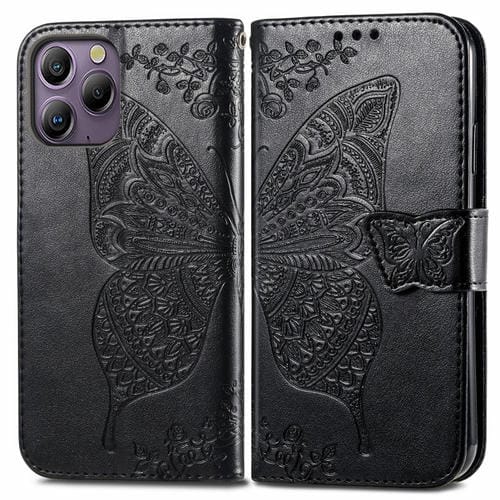 Funda de Cuero para BlackView A96 con Relieve de Flor y Mariposa (Negro)