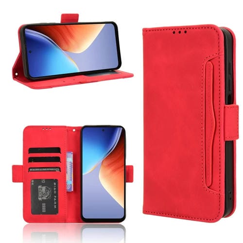 Funda de Cuero para BlackView A96 con Textura Becerro y Ranuras para Tarjetas (Rojo)