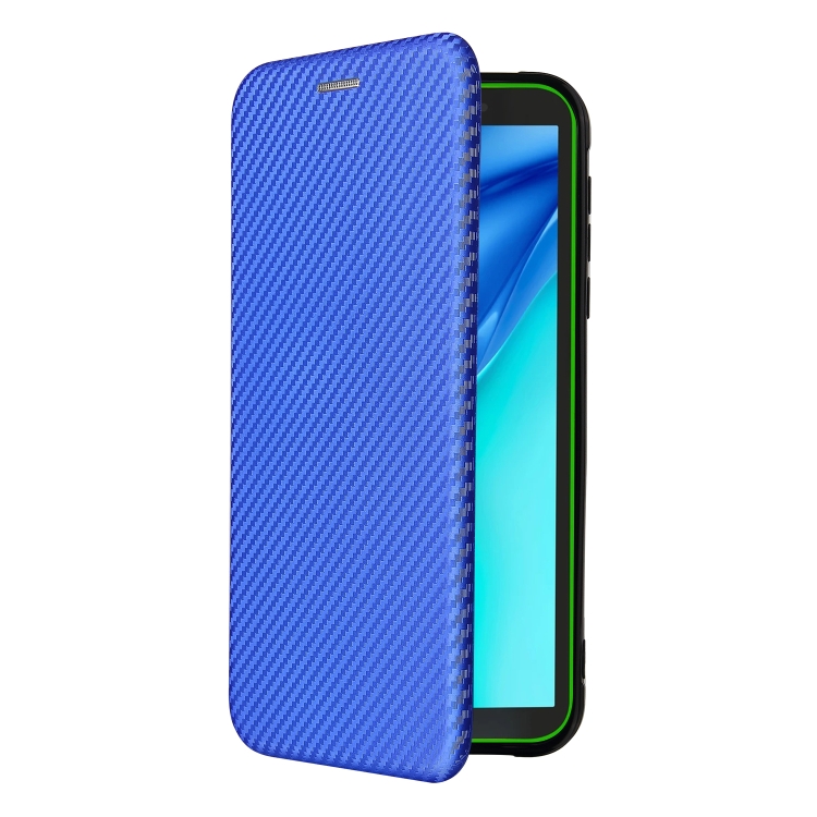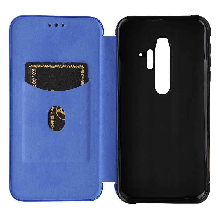 Funda para BlackView Bv6300 Pro Carbon Fibre TPU + PC con Flip Horizontal y Ranura para Tarjeta (Azul)