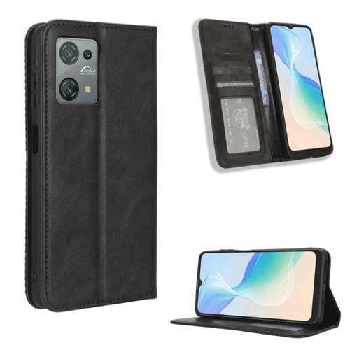 Funda de Cuero para BlackView Oscal C30 / C30 Pro con Hebilla Magnética y Textura Retro (Negro)