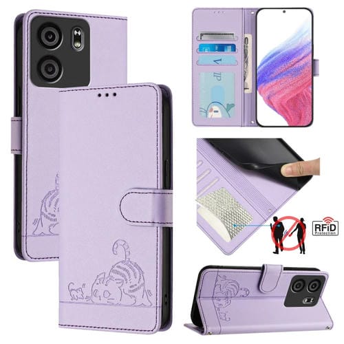 Estuche para teléfono Blu View 5 Cat Rat cuero RFID en relieve con cordón (Púrpura)