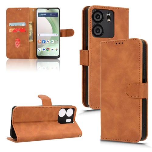 Funda de Cuero con Tapa Magnética para BLU View 5 Skin Feel (Marrón)