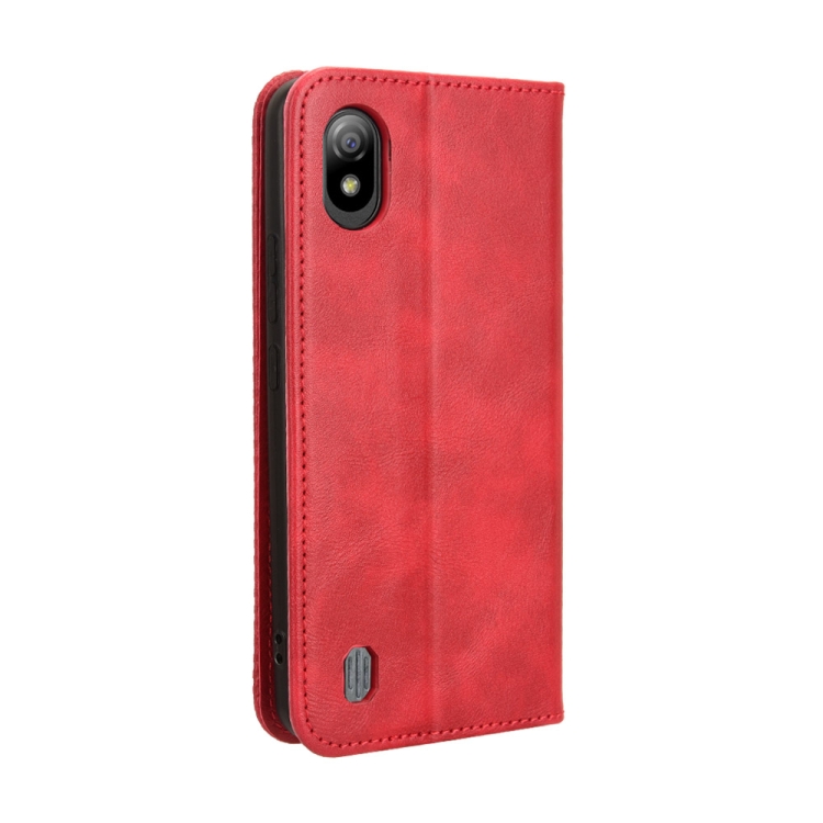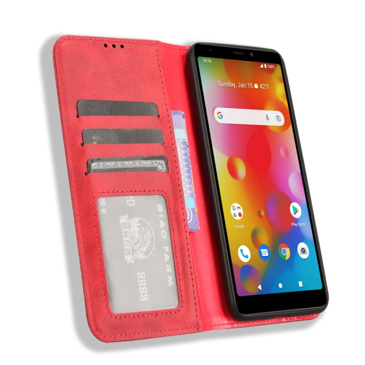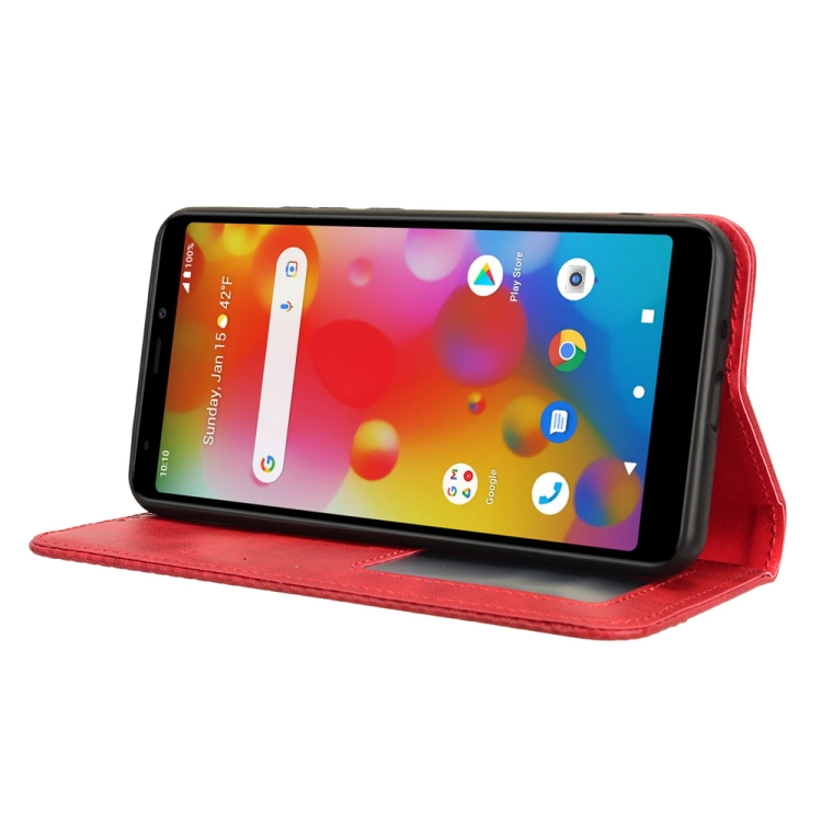 Funda para Boost Mobile Bounce 4G de Cuero con Textura Retro y Hebilla Magnética (Rojo)
