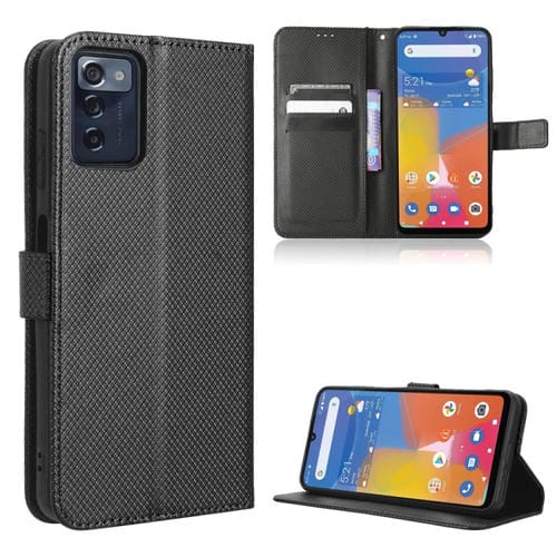 Funda para Consumer Cellular Zmax 5G Cuero Textura de Diamante (Negro)