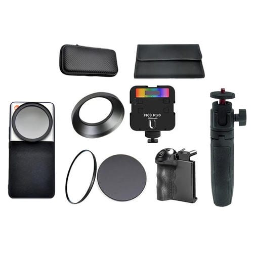 Juego 9 en 1: estuche para teléfono, caja de almacenamiento, CPL, NIGHT, ND2-400, mango de zoom, trípode, luz de relleno, micrófono, cubierta metálica de gran angular