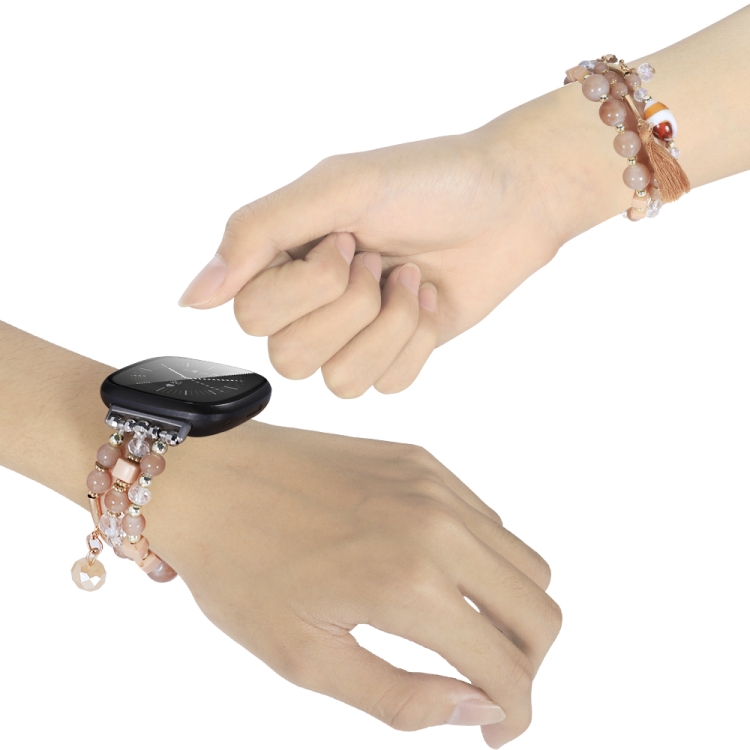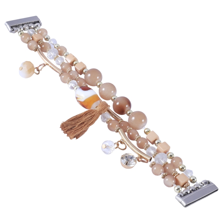 Pulsera Round Bead Chain para Fitbit Versa 3 y Sense (Café)