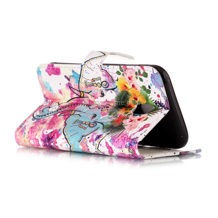 Estuche de Cuero para Galaxy J5 (2017) Versión UE con Tapa Horizontal, Patrón Elefante Flores, Soporte, Ranuras y Billetera