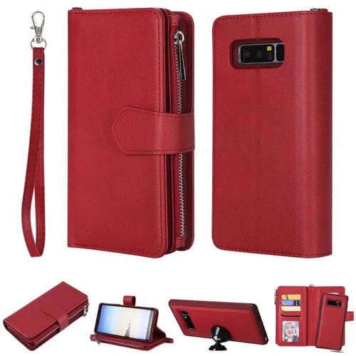 Estuche protector 2 en 1 para Galaxy Note 8 con cremallera, ranuras para tarjetas, soporte y función billetera (Rojo)
