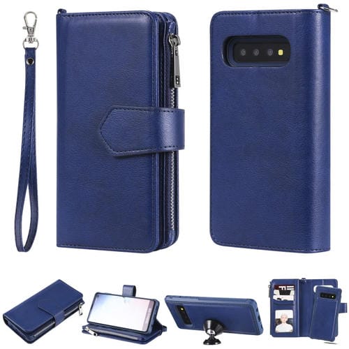 Estuche Protector 2 En 1 Samsung Galaxy S10 con Cremallera Ranuras Tarjetas Soporte Fotos Billetera (Azul)