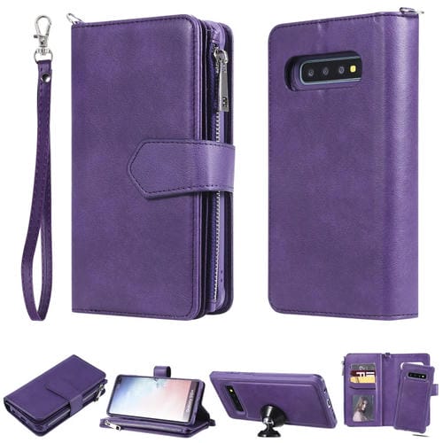 Estuche Protector 2 En 1 Samsung Galaxy S10 Plus a Prueba de Golpes con Cremallera Ranuras para Tarjetas Soporte y Billetera (Púrpura)