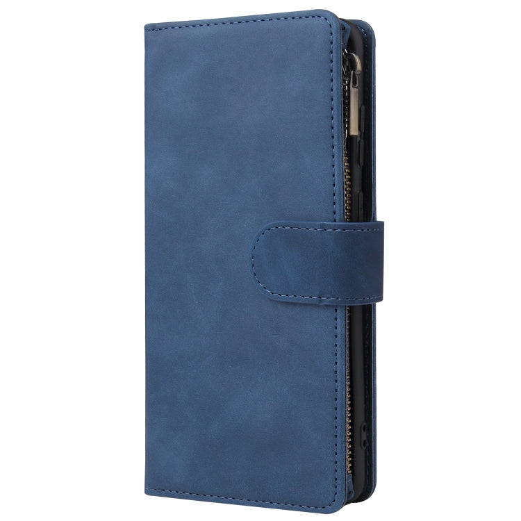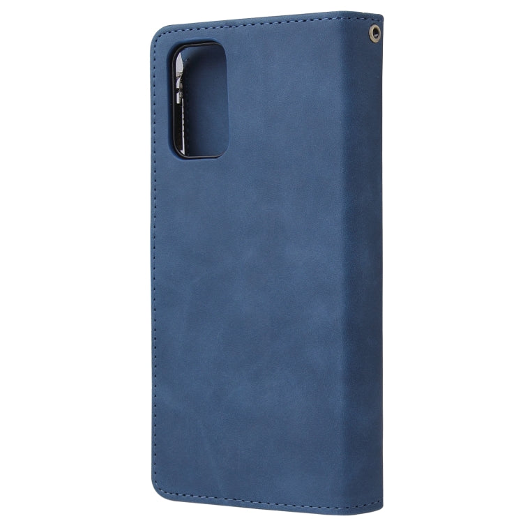 Estuche de Cuero para Galaxy S20 con Tapa Horizontal Multifuncional, Ranura para Tarjeta, Soporte, Billetera con Cremallera y Marco de Fotos (Azul)