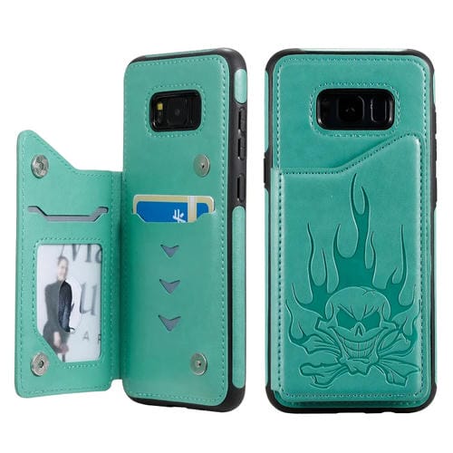 Estuche protector para Galaxy S8 + Caja de Cráneo Patrón de Relieve a prueba de golpes con Soporte y Tragamonedas y Billetera (Verde)