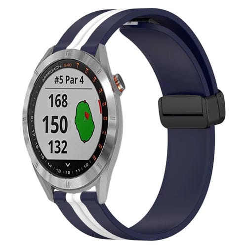 Correa de Reloj para Garmin Approach S40 Silicona Cierre Magnético Plegable 20mm (Azul Medianoche + Blanco)