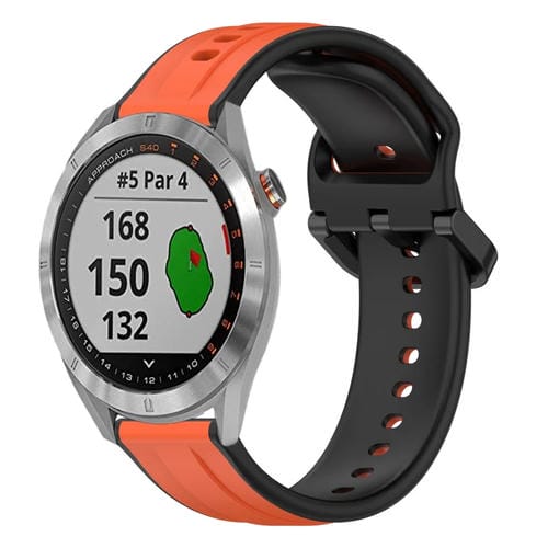 Correa de Reloj para Garmin Approach S40 Silicona Dos Colores con Bucle Convexo 20mm (Naranja + Negro)