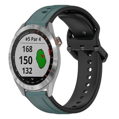 Correa de Silicona para Garmin Approach S40 20mm con Bucle Convexo (Verde Oliva + Negro)