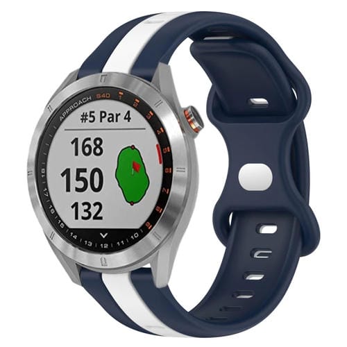 Correa de Reloj para Garmin Approach S40 Silicona Dos Colores con Hebilla de Mariposa 20mm (Blanco + Azul)
