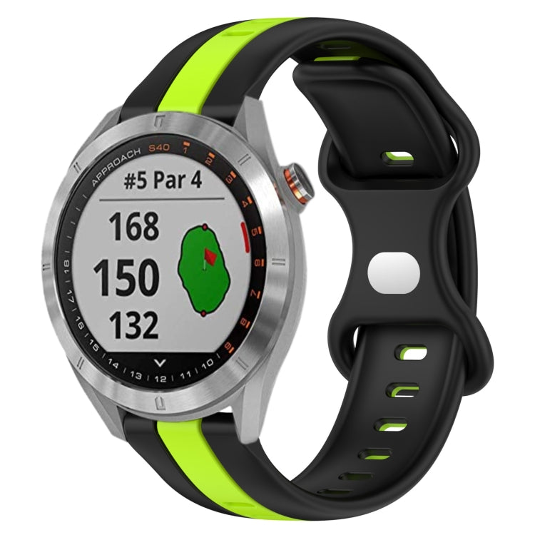 Correa de Reloj Garmin Approach S40 Silicona Dos Colores con Hebilla de Mariposa 20mm (Negro + Verde)