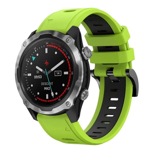 Banda de Reloj de Silicona Deportiva para Garmin Descent Mk 2 26mm (Verde Lima + Negro)