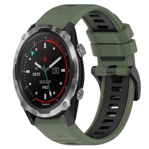 Correa silicona para Garmin Descent Mk 2 26mm deportiva dos colores (Verde Oliva + Negro)